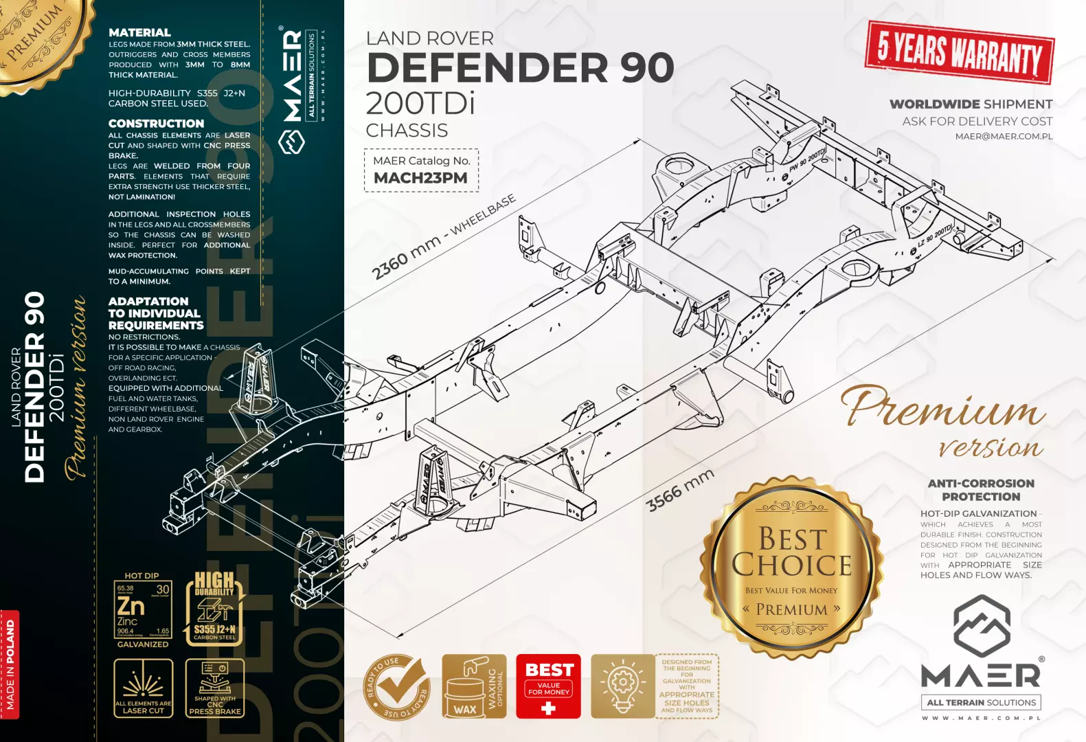 This is PREMIUM VERSION of Land Rover DEFENDER 90 200TDi chassis – premium level of our highest quality product supplied with: